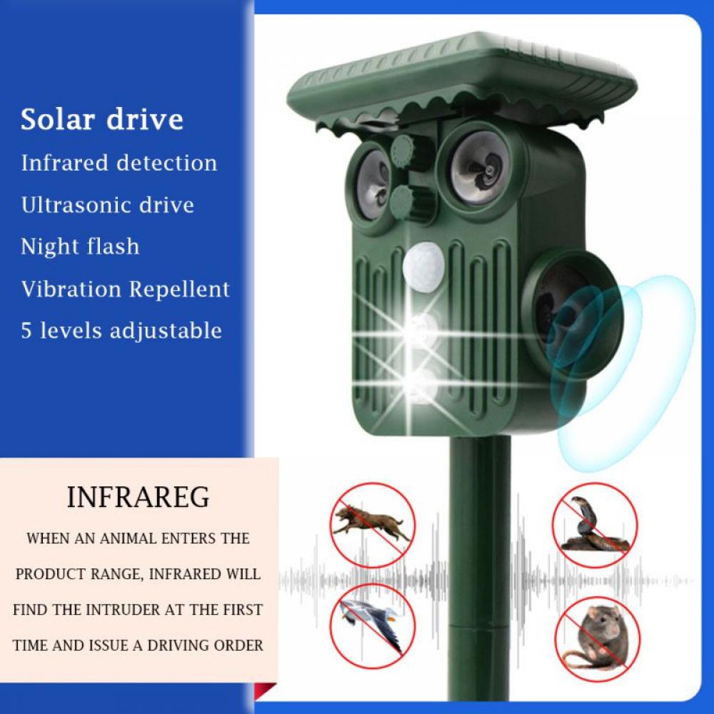 A strong flashing LED to scare animals. 246810 Solar Ultrasonic Animal Repellers. Natural Animal Repellents Rodent Repellent Rabbit Repellent Deer Repellent Keywords.